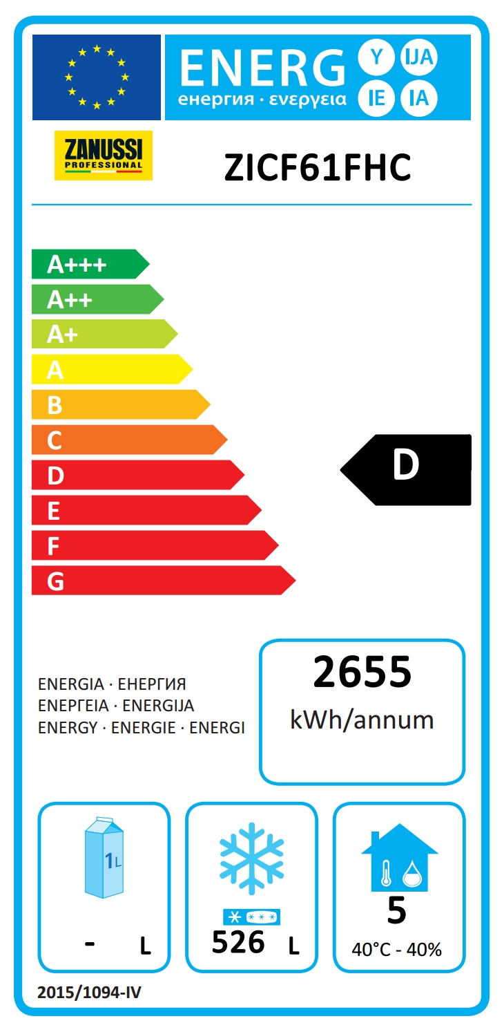 • Modello EU Regulation (2015/1094): armadi freezer