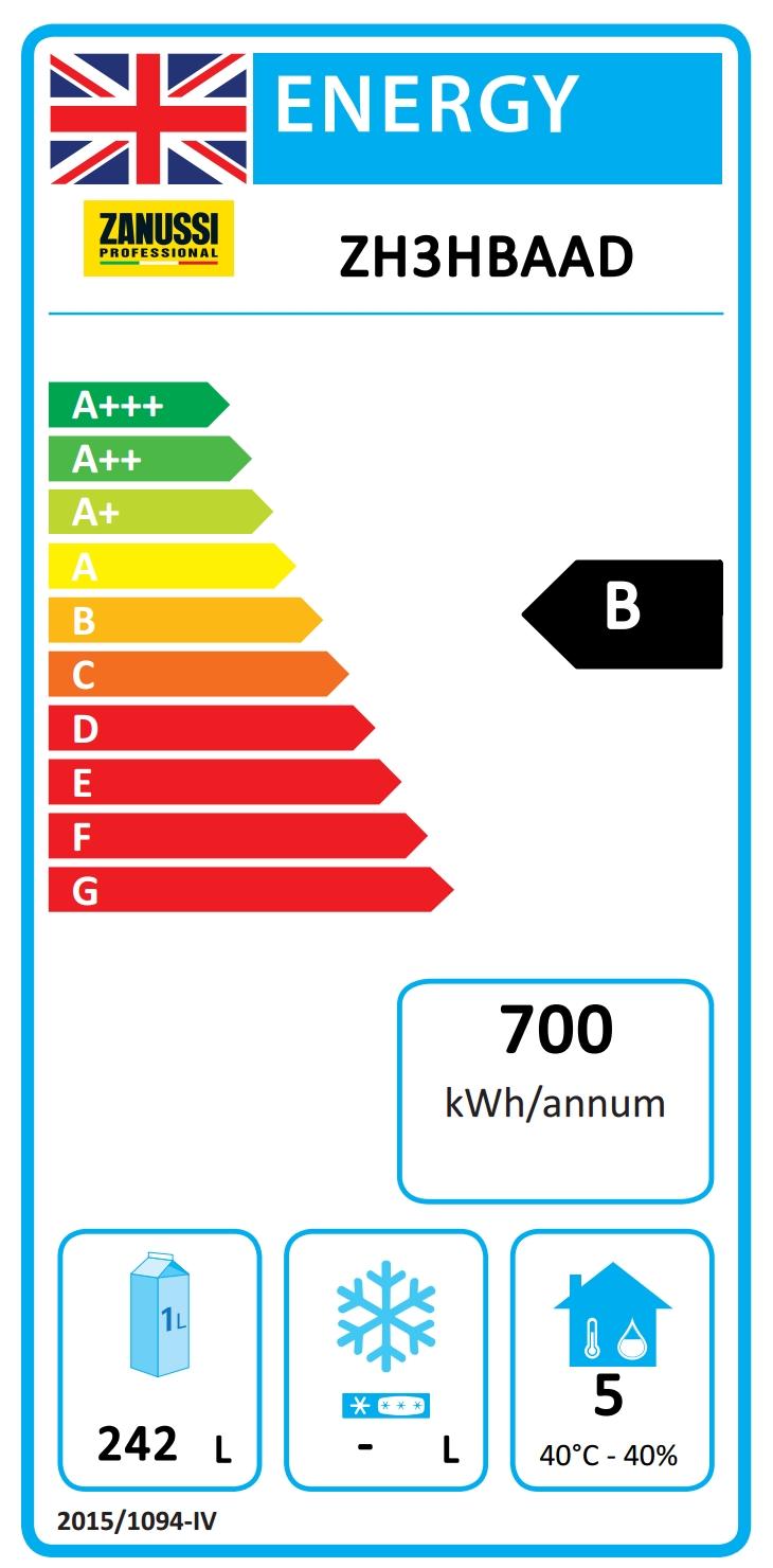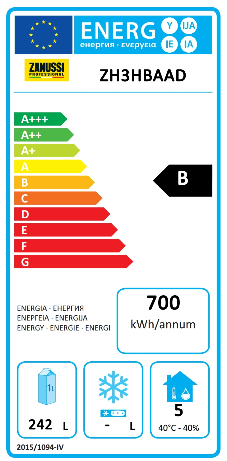 • Classe energetica (in riferimento al Regolamento UE 2015/1094): B